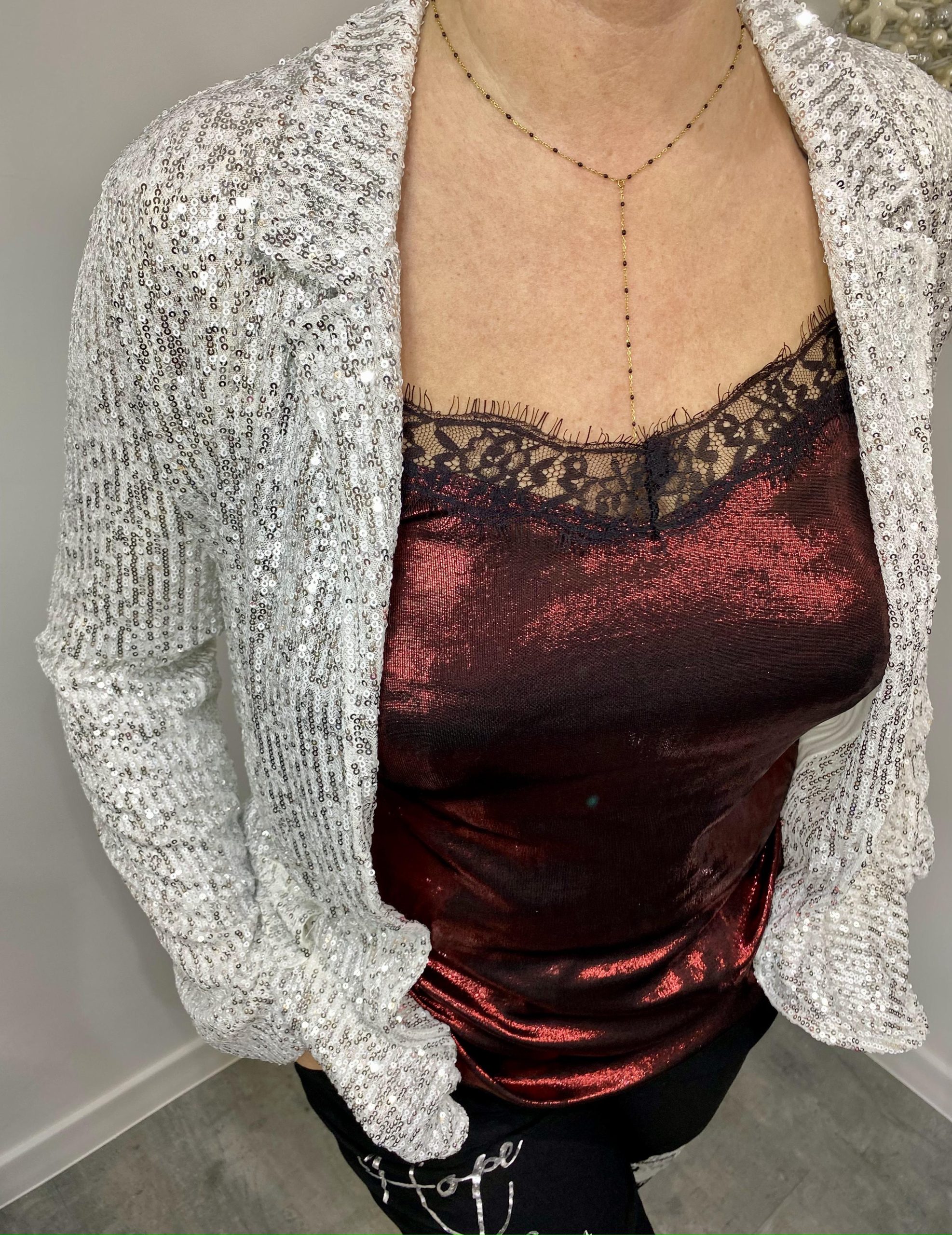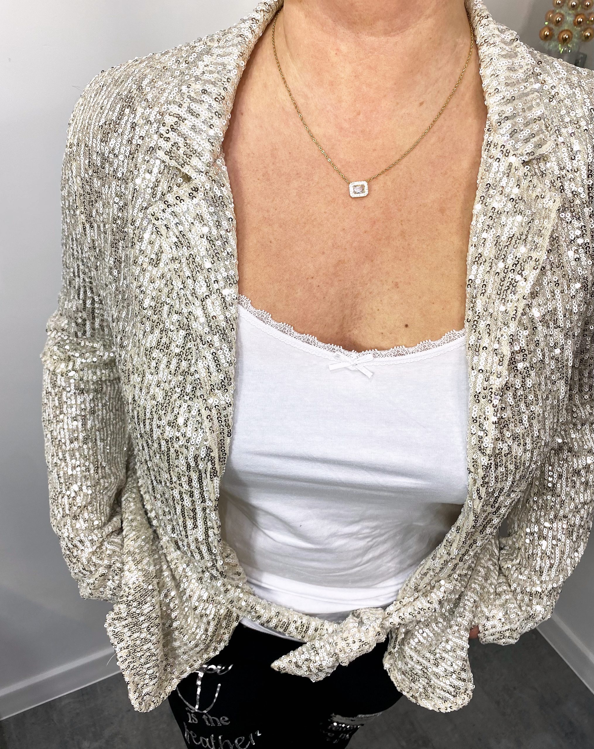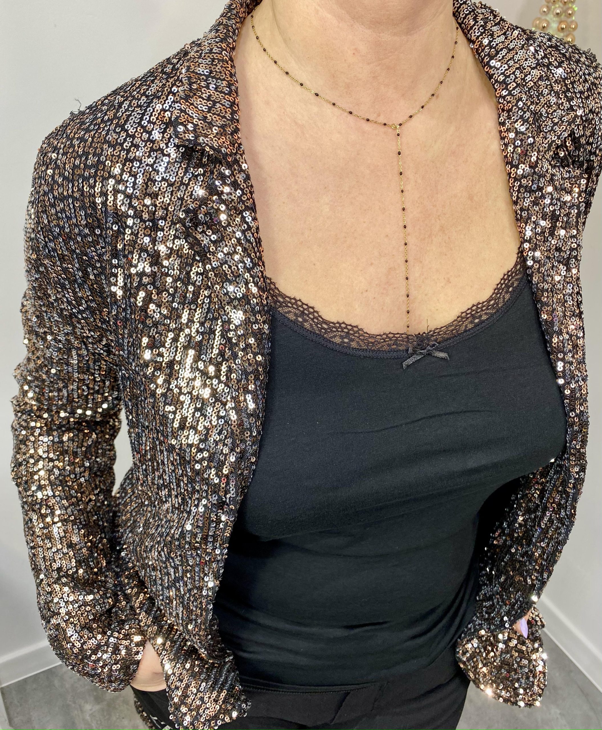 Marynarka cekinowa z paskiem, idealna na wielkie wyjścia, ale również aby rozświetlić swoją stylizację i nadać jej pazura. Bądż gwiazdą, zrób wrażenie, oślep swoim blaskiem.